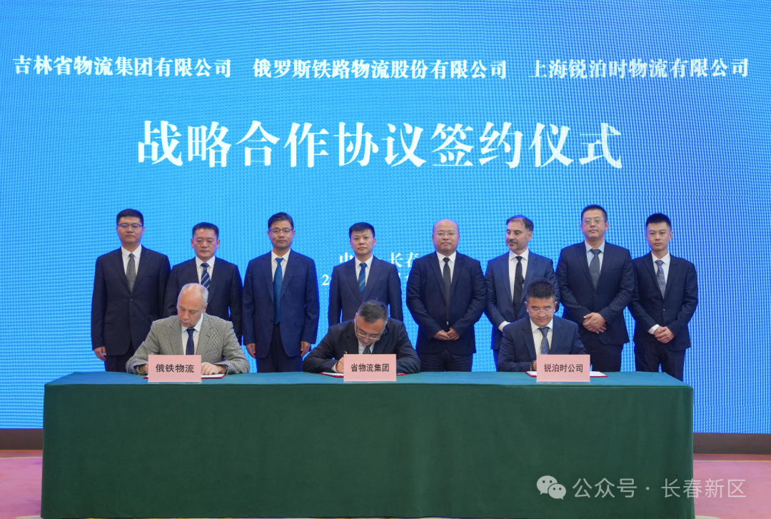 10月11日,吉林省物流集团有限公司与俄罗斯铁路物流股份有限公司、上海锐泊时物流有限公司战略合作框架协议签约仪式在长春举行。吉林省物流集团有限公司党委书记、董事长李晓东,俄罗斯铁路物流股份有限公司副总经理索戈夫·阿列克谢,上海锐泊时物流有限公司总经理李庆分别代表三方签署战略合作框架协议。长春新区管委会副主任李忠山参加活动并证签。