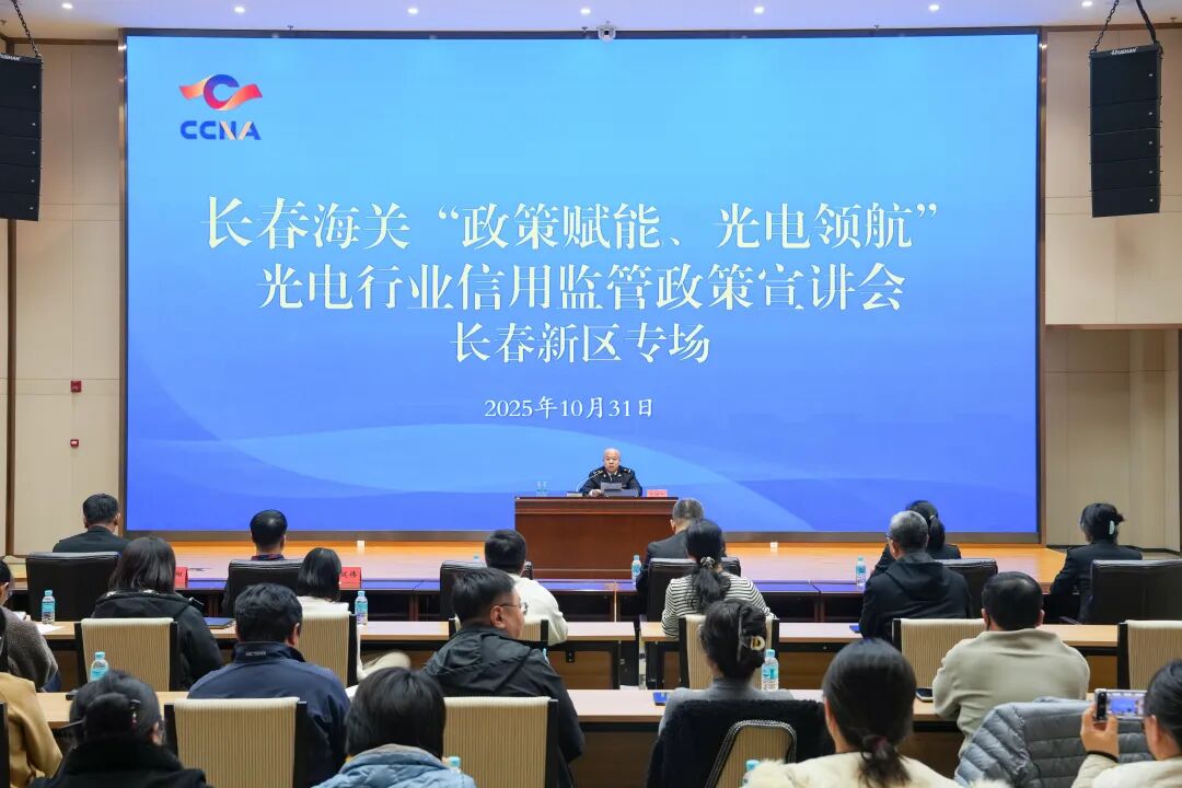 10月31日,长春新区商务与文化旅游局联合长春海关举办“政策赋能、光电领航”光电行业信用监管政策宣讲会,助力长春新区外贸企业精准把握海关监管政策、提升通关效率、降低贸易合规风险,持续优化营商环境,赋能外向型经济高质量发展。长春新区40余家光电企业代表参会。