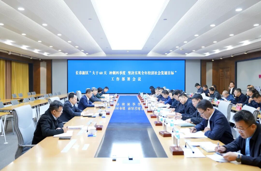 11月8日,长春新区召开“大干60天 冲刺四季度 坚决实现全年经济社会发展目标”工作部署会议,深入学习贯彻党的二十届四中全会精神,认真落实省委省政府工作部署,按照全市前三季度高质量发展讲评会工作要求,动员全区上下“大干60天,冲刺四季度,坚决实现全年经济社会发展目标”。长春市委副书记、长春新区党工委书记闻然主持会议并讲话。长春新区党工委副书记、管委会主任徐勇作工作部署。