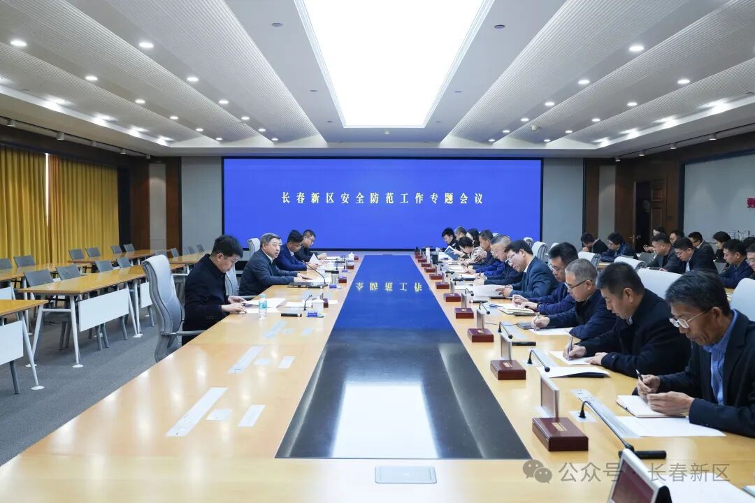长春新区高新开发区管委会主任刘庶,长春新区临空示范区管委会主任张志龙,长春新区各相关部门主要负责人,各开发区分管负责人和应急局主要负责人参加会议。
