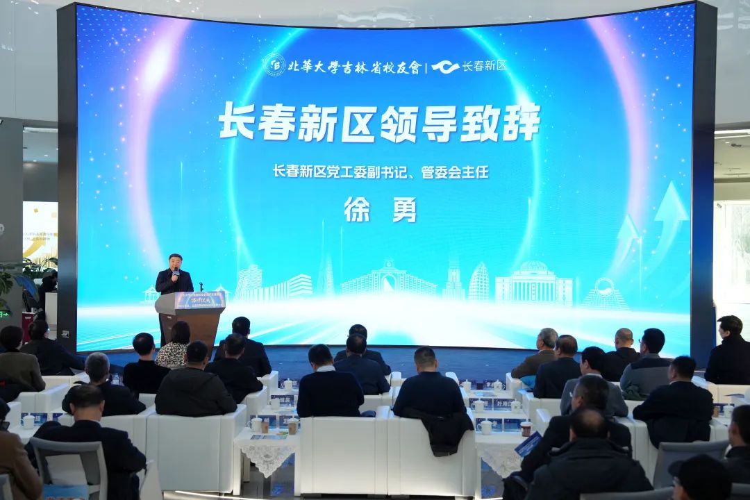 徐勇在致辞中表示,长春新区是活力涌动的创业创新热土、欣欣向荣的开发开放高地,全省最优质资源在新区集聚、最优惠政策在新区落地。诚挚邀请广大北华大学校友,以长春新区为起点,积极投身到吉林振兴发展的建设中来,把个人的事业发展与长春新区的高质量发展紧密结合起来,谱写携手共进、合作共赢的美好篇章。长春新区将竭诚为广大北华校友和“校友之友”来新区投资兴业、创新发展营造良好环境,为校友企业提供更加精准、高效的服务保障。