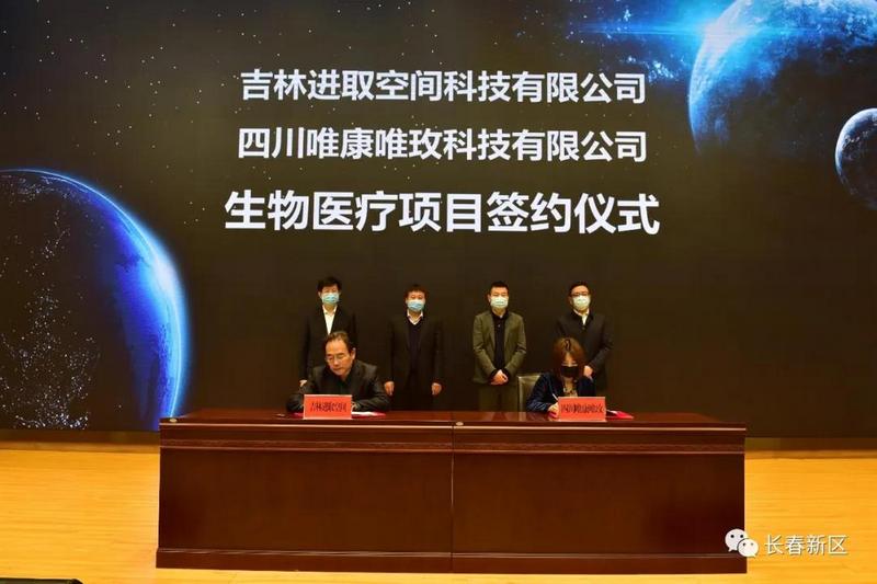 当日,签约项目共5个,涵盖新太空经济多个领域。进取空间与吉林省农业科学院签订了太空育种合作协议,双方将在太空种子培育项目上进行深度合作;与长春市慢山里研学实践教育培训学校有限公司签订了航天科普研学教育合作协议,双方将共同开拓航天科普教育实践及后续产业项目;与四川百年聚集团签订了太空生物医药合作协议,双方将利用太空环境优势,在生物医药领域开展合作;与四川唯康唯玫科技有限公司签订了太空生物制药合作协议,双方将围绕生物制药领域,共同实现太空生物制药新目标;与四川农大正红生物技术有限责任公司签订太空农业合作协议,共同打造新太空经济下的太空农业产业。